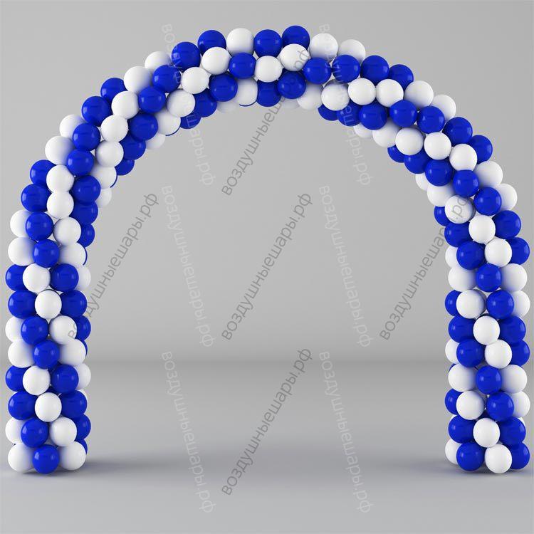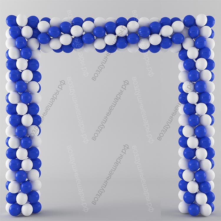 Ворота из шариков бело-синие - изготавлена из нелетающих шаров, надутых воздухом. Она ставится на пол и крепится к стене или, если нужна дополнительная устойчивость, то на специальные стойки. Арка из воздушных шаров (дуга из шариков) - это практичное и недорогое украшение на праздник. Арки из шариков часто используют для оформления входных групп магазинов, салонов, ресторанов..