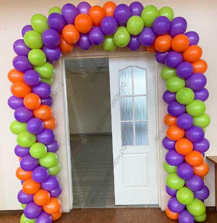 Длина арки из шариков считается в погонных метрах. На стандартную дверь требуется арка размером 8 погонных метров (высотой и шириной по 2,5 метра).