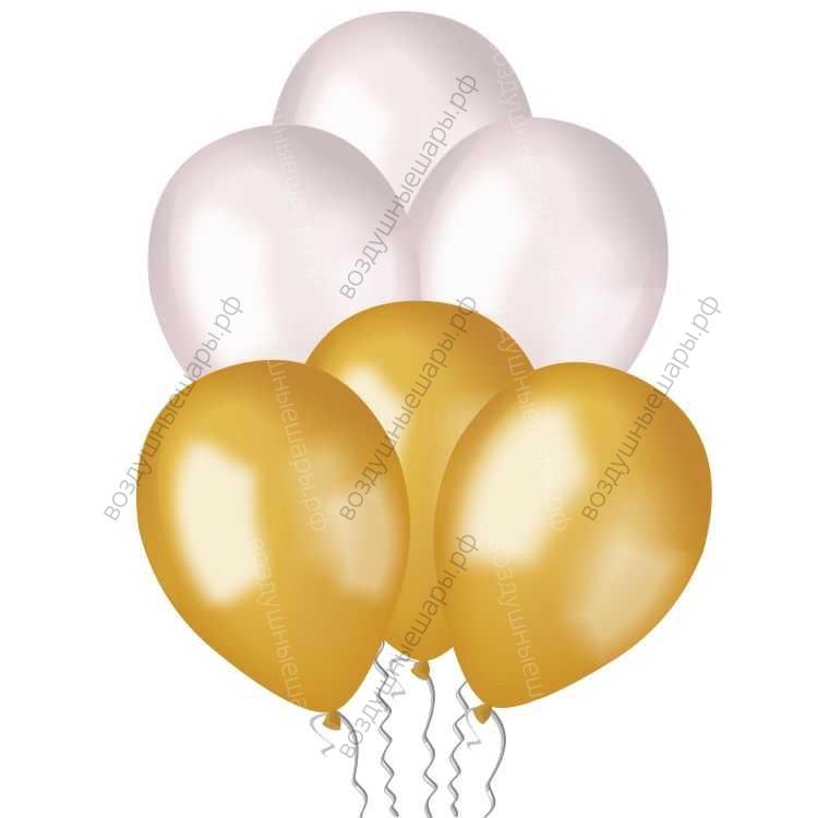 Бело Золотые, шары с гелием металлик, 30 см. характеристики: