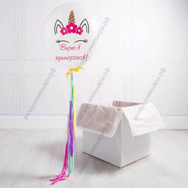 Закажите Большой белый шар с единорогом в подарочной коробке с доставкой по Москве недорого или с самовывозом прямо сейчас. Звоните!