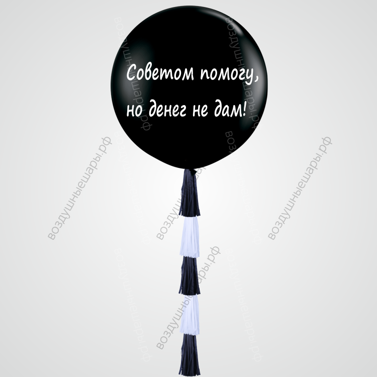 Большой черный гелиевый шар "Денег нет", 70 см с тассел характеристики: