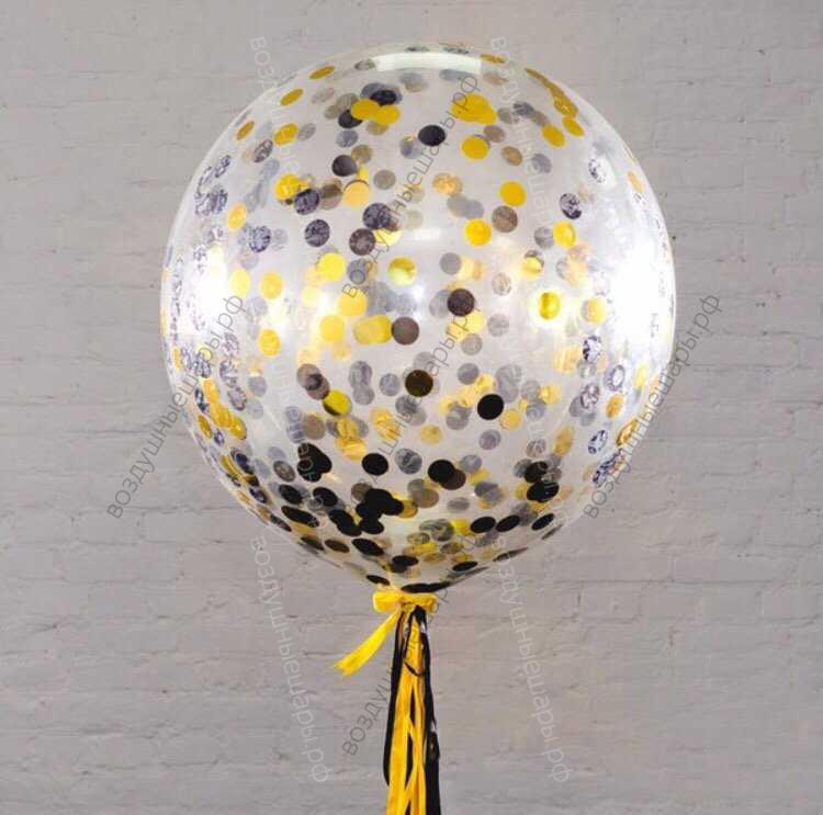 Большой шар 60 см с гелием с черным и золотым конфетти на ленте характеристики: