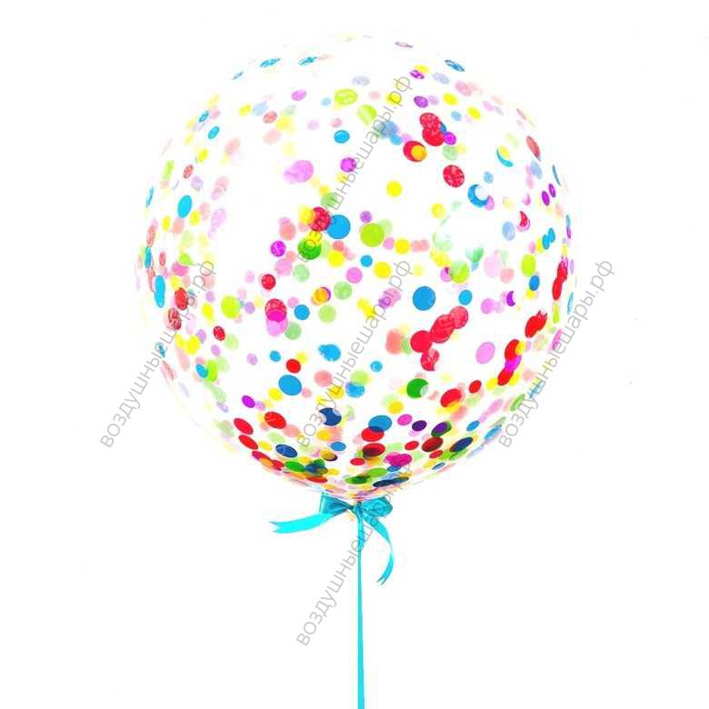 Большой шар 60 см с гелием с разноцветным конфетти на ленте характеристики: