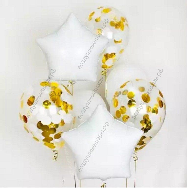 Букетик "Белое золото" с конфетти и звездами из . станет тонким украшением вашего торжества или идеальным подарком для ваших близких. Если вам понравился данный букет, но вы хотите изменить его цвет или заменить в нем некоторые шары, то это возможно! Просто сообщите нам об этом.