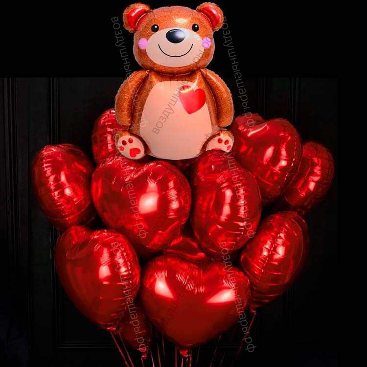 Букет фольгированных сердец с Мишкой на 14 февраля характеристики: