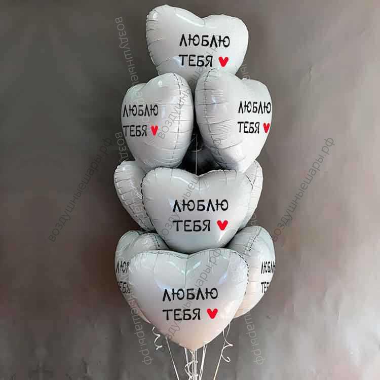 Букет из 10 белых сердец с гелием Люблю Тебя!, 10 сердец