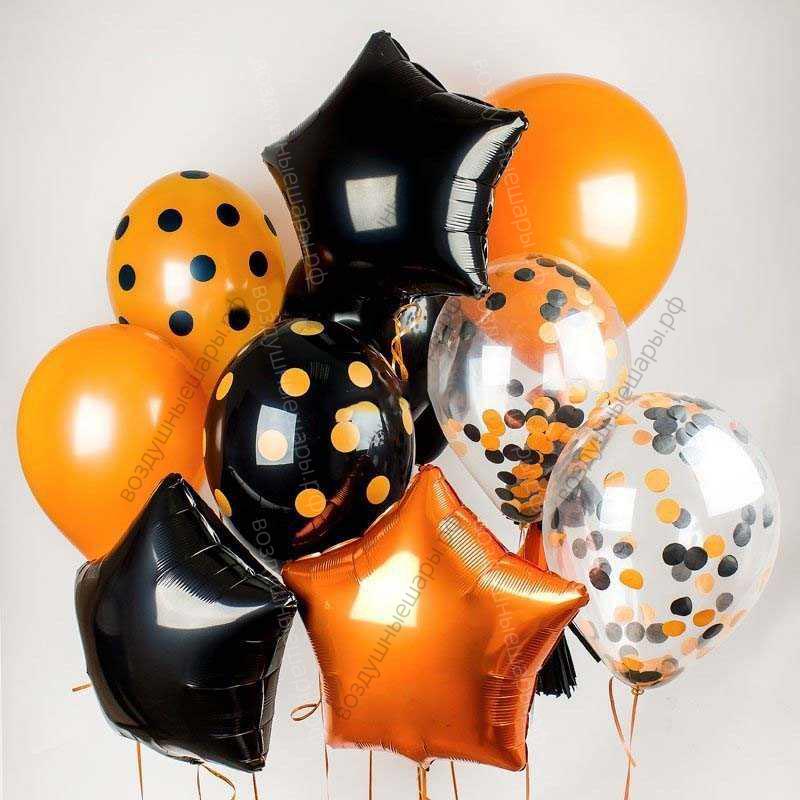 Закажите Букет из черно-оранжевых гелиевых шаров "Янтарное настроение" из 7 шаров + 3 звезды недорого с доставкой по Москве прямо сейчас!