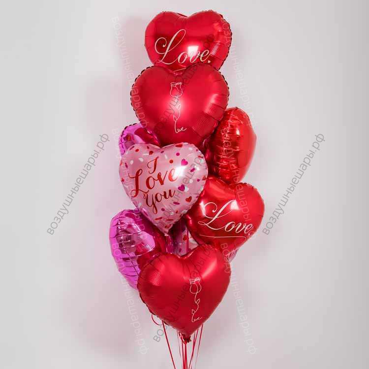 Букет на 14 февраля из фольгированных сердечек "Люблю тебя", 9 шаров