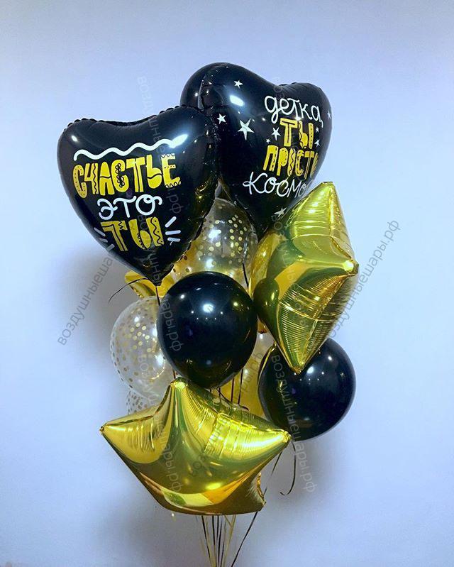 Закажите Букет из гелиевых шаров "Комплименты для тебя" из 8 шаров, 3 звезды, 2 сердца недорого с доставкой по Москве прямо сейчас!