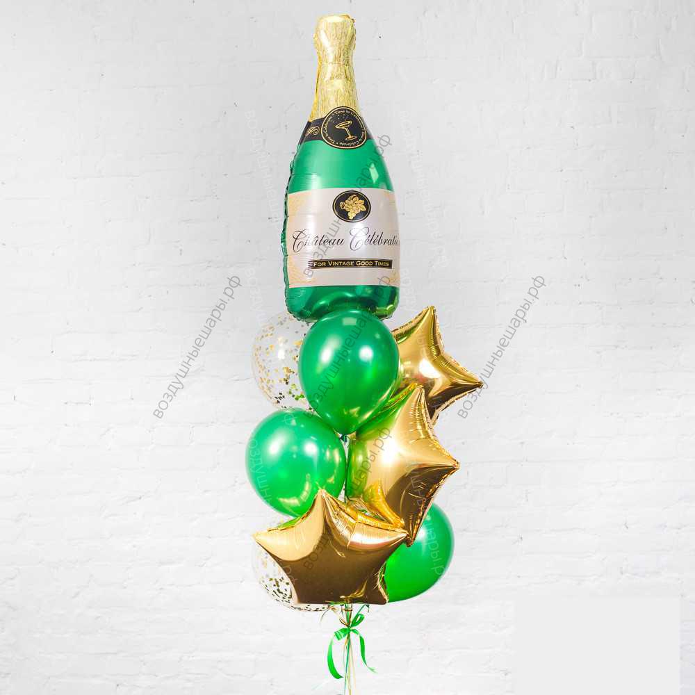 Подарок из гелиевых шаров "Провожаем Старый год", 9 шаров и бутылка