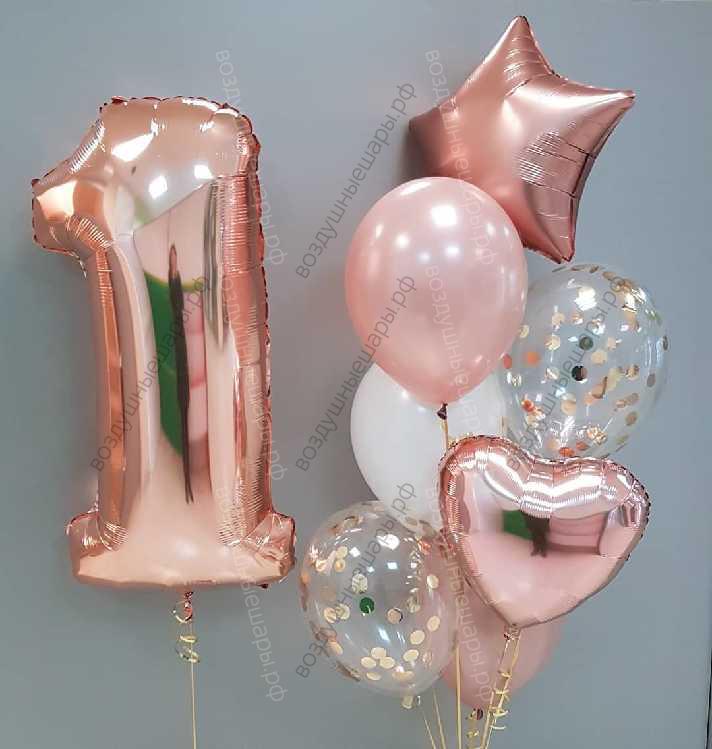 Букет из гелиевых шаров Розовое золото для девочки характеристики: