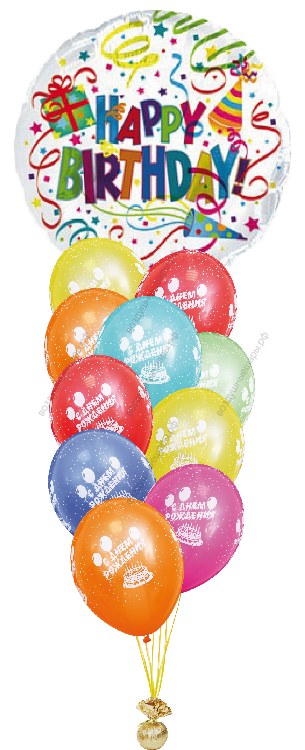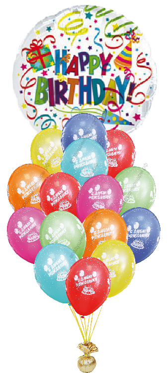 Закажите Букет из шариков "С Днем рождения" с большим шаром Happy Birthday недорого с доставкой по Москве прямо сейчас!