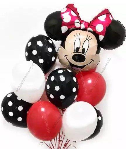 Минни с шарами для девочки, , 9 шт красных, белых, в горошек и Минни