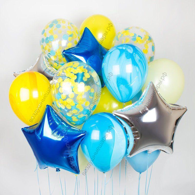 Закажите Букетик из шаров "Морской бриз" из 12 шт и 3 звездочки недорого с доставкой по Москве прямо сейчас!