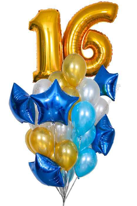 Закажите Букет из шаров на День рождения, 16 лет, 20 шаров и 5 шаров- звезд недорого с доставкой по Москве прямо сейчас!