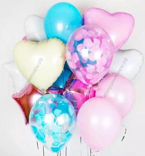 Закажите Букет из шаров "Нежный микс для принцессы" из 7 шаров, 3 звезды, 4 сердца недорого с доставкой по Москве прямо сейчас!