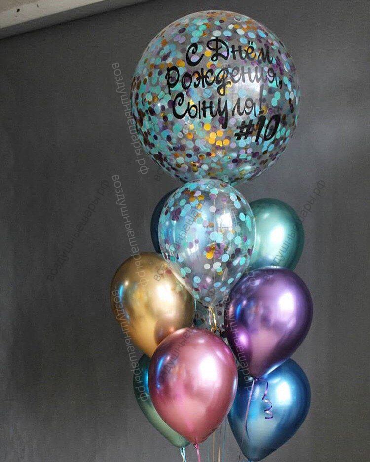 Закажите Букет из шаров с гелием "Большое и яркое поздравление" из 10 шаров + большой шар с надписью недорого с доставкой по Москве прямо сейчас!