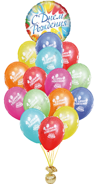 Закажите Букет из шаров с надписью и малым шаром "С Днем рождения" недорого с доставкой по Москве прямо сейчас!