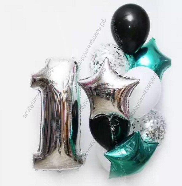Букет со звездами и цифрой на годик мальчику, 6 шариков + 3 звезды и цифра