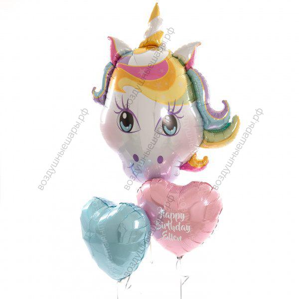 Набор из шаров Волшебный единорог с поздравлением, Единорог+2 сердца
