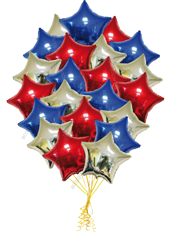 Букет из звезд триколор из шаров это впечатляющий подарок и великолепное украшение для вашего торжества!