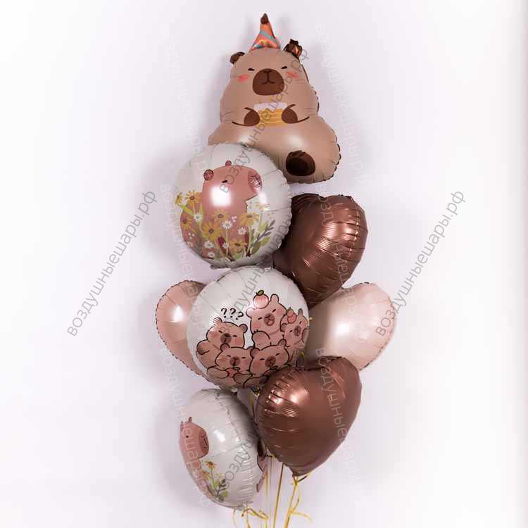 Букет из воздушных шаров с капибарой для Дня рождения, 7 гелиевых шаров и фигура