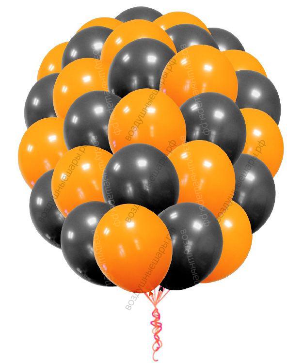 Букет оранжевых и черных гелиевых шаров "Георгиевская лента", 30 шаров
