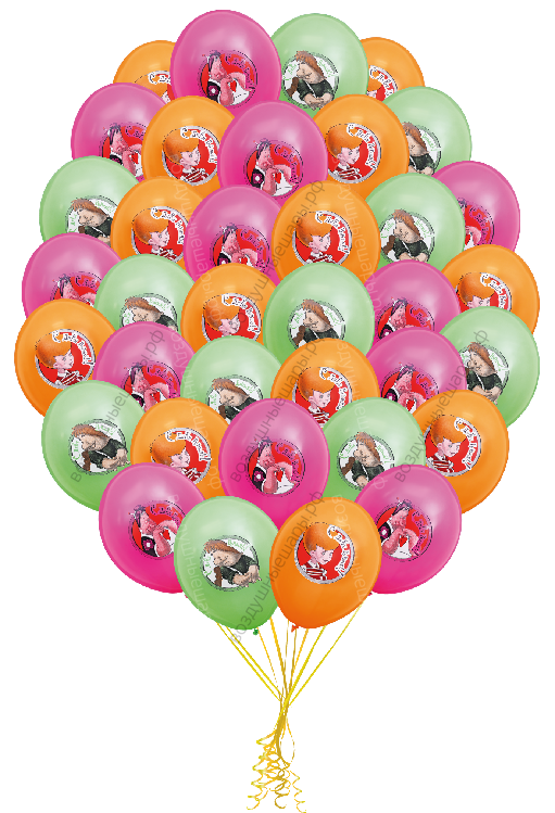 Букеты и облака из шариков с изображениями любимых героев состоят из воздушных шаров в основании и гелиевых, летающих шаров сверху.
