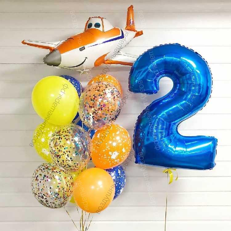 Букет шаров ребёнку "Весёлый самолёт" на 2 года характеристики: