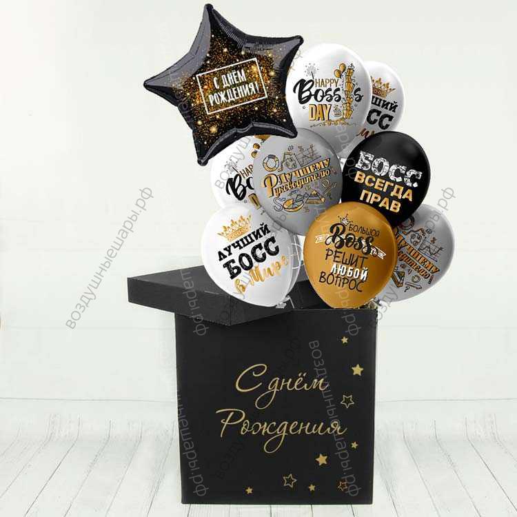 Черная коробка на День рождения руководителю «Лучший Босс в мире», 12 шаров в коробке