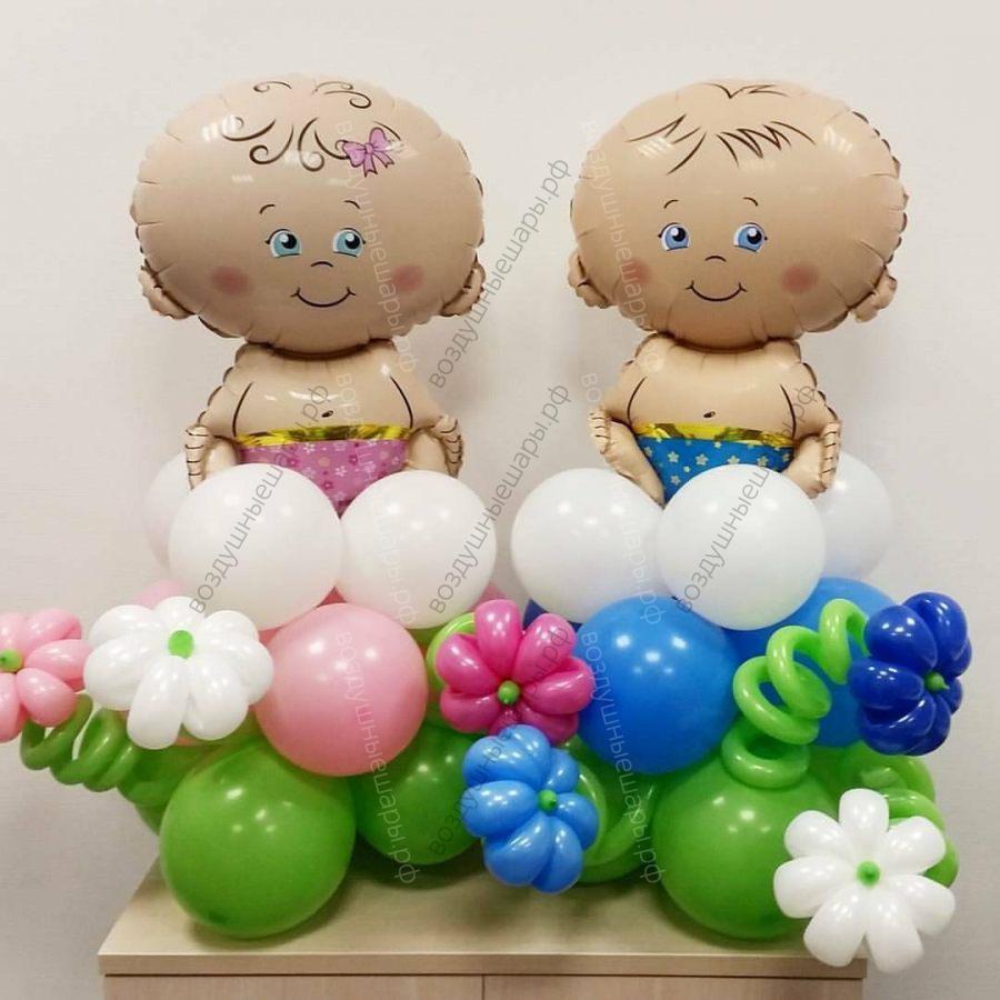 Фигура из шаров "Малыш на полянке" на рождение ребенка, Одна фигура: Мальчик или девочка на выбор