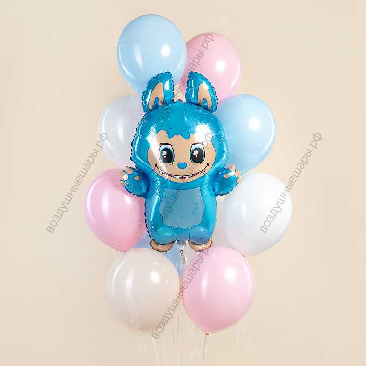 Закажите Фигура Лабубу Голубой с фонтаном шаров с гелием недорого с доставкой по Москве прямо сейчас!