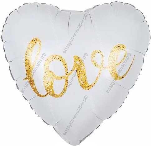 Фольгированный шар с гелием Сердце, Любовь, Белый/Золото, 46 см. характеристики: