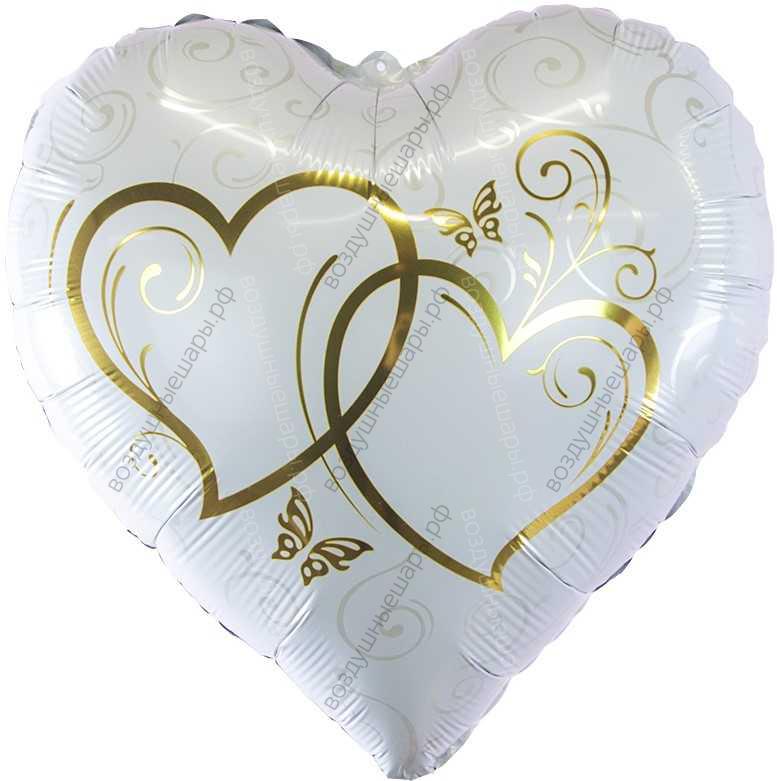 Фольгированный шар с гелием Сердце, Влюбленные сердца, Белый/Золото , 46 см. характеристики: