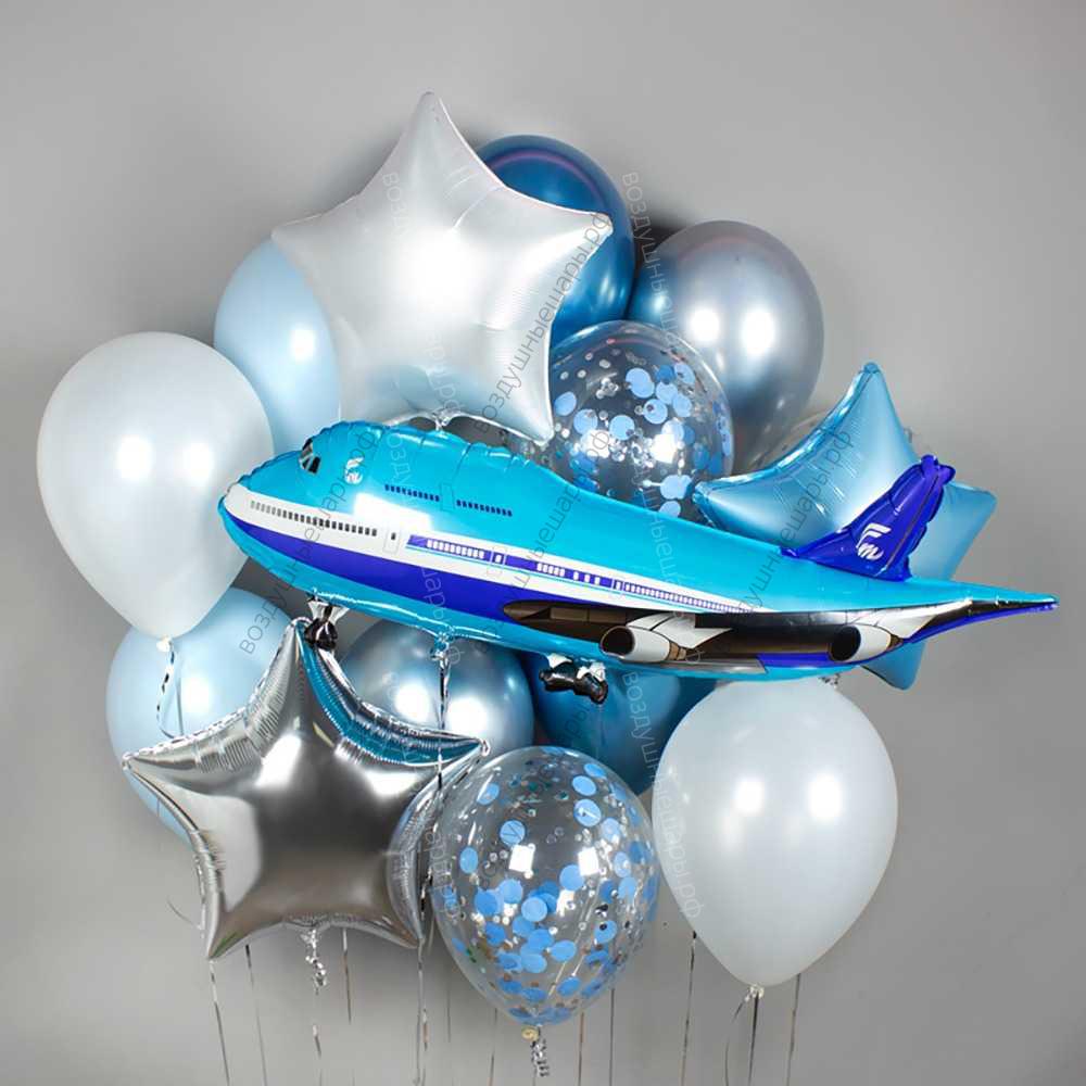 Фонтан гелиевых шаров "Пилот" с самолетом характеристики: