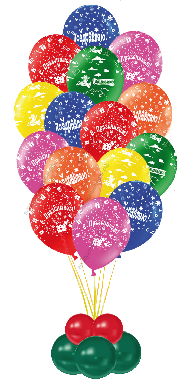 Фонтан из 15 шаров "Поздравляю" - это большая напольная композиция из шаров, высотой от полутора до двух метров (см. Свойства товара). Она мобильна и ее легко переставить в нужное место.