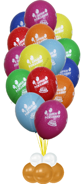 Закажите Фонтан из 15 шаров "С днем рождения", пастель с доставкой прямо сейчас!