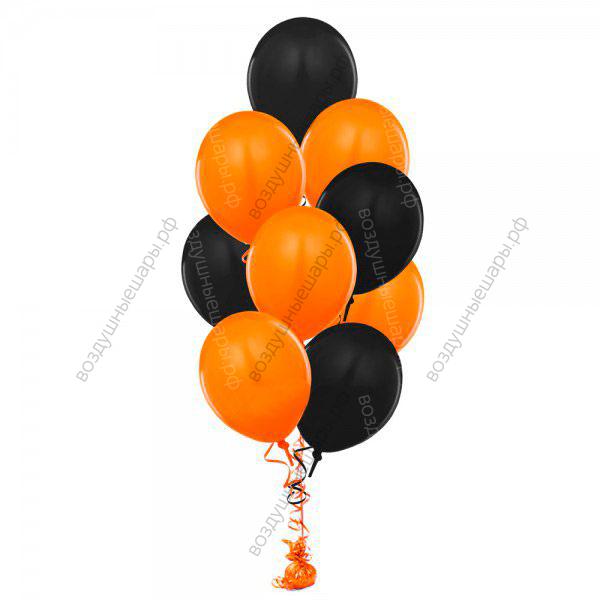 Фонтан из 9 черных и оранжевых шаров на праздник "Георгиевская лента" характеристики: