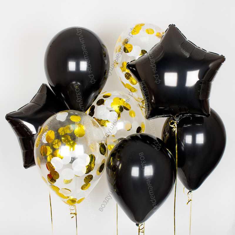 Фонтан из гелиевых шаров "Черное золото" на праздник, 6 шаров + 2 звезды