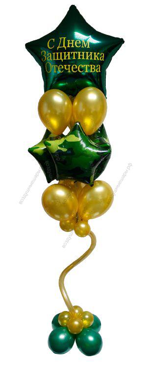 Фонтан на 23 февраля из шаров Камуфляж со Звездой "С праздником!" из шариков это изумительный подарок и роскошное украшение для вашего торжества...