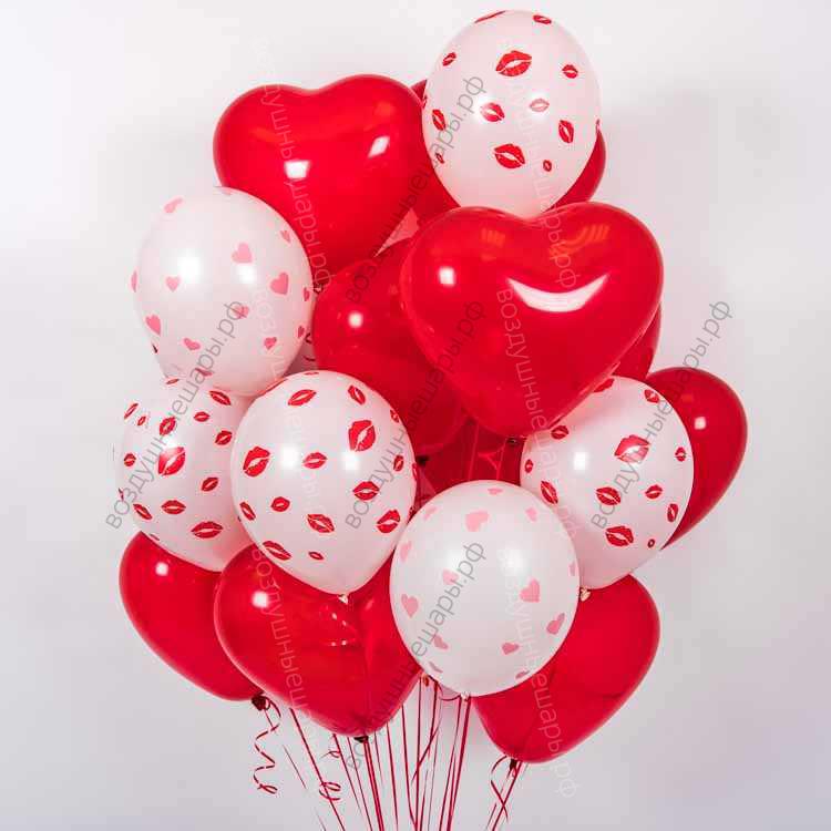 Фонтан из латексных шариков "Сердца и поцелуи" на 14 февраля, 19 шаров