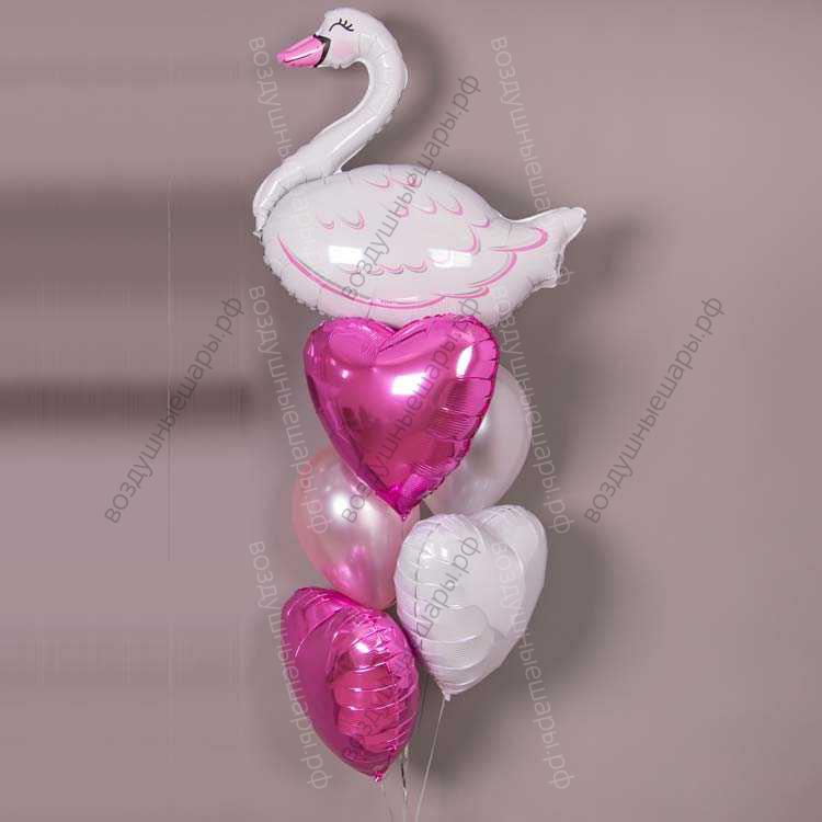 Фонтан из шариков "Лебединый", 5 шаров и фигура на грузике