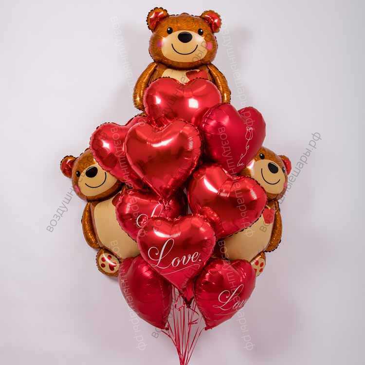 Фонтан из шаров для Любимой из сердец с Мишками, 15 шаров