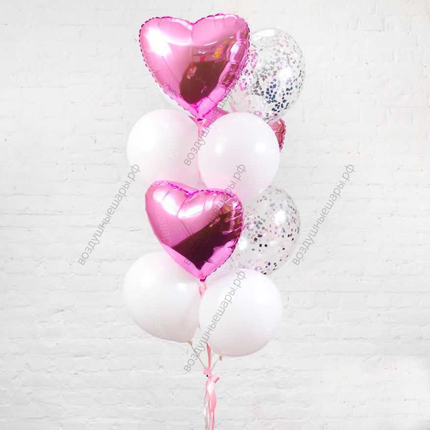 Фонтан из шаров для влюбленных "Симфония любви", 8 шаров + 3 сердца