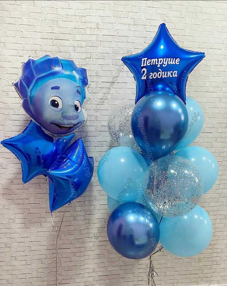 Закажите Фонтан из шаров Фиксики "Нолик" для ребенка на 2 года, 10 шаров+3 звезды+Фиксик недорого с доставкой по Москве прямо сейчас!