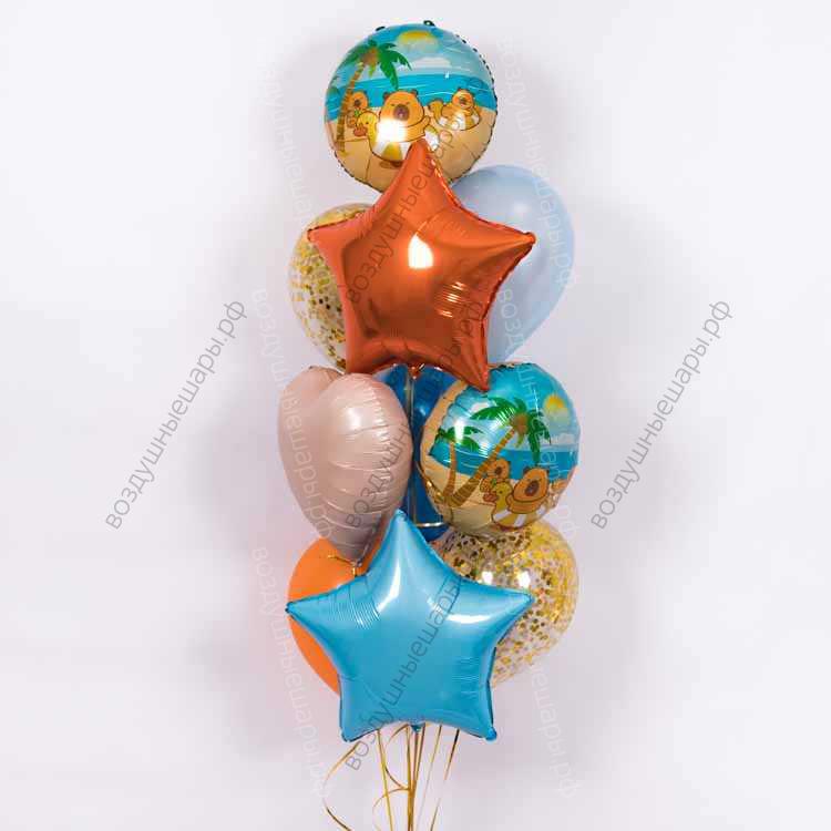 Фонтан из шаров "Капибара на пляже", 10 шариков