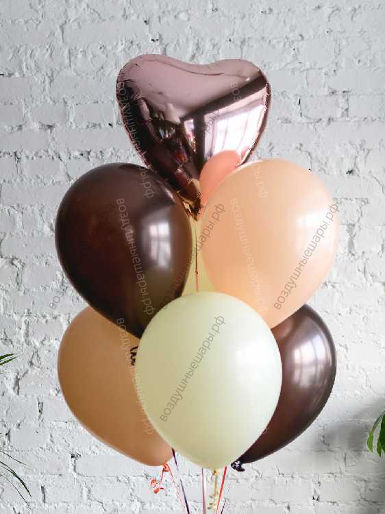 Закажите Фонтан из шаров "Кофе с молоком" из 6 шаров + сердце недорого с доставкой по Москве прямо сейчас!
