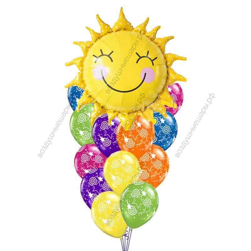 Фонтан из шаров на масленицу "Солнышко в окошке", 15 шаров + фигура