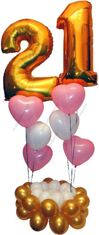 Закажите Фонтан из шаров "Поздравляем" с сердцами и цифрами, 2 цифры, 6 шаров-сердец недорого с доставкой по Москве прямо сейчас!
