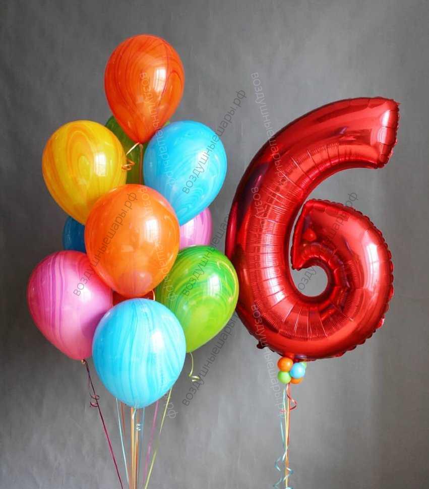 Фонтан из шаров ребенку на 6 лет "Разноцветные агаты" станет прекрасным украшением вашего торжества или желанным подарком для ваших близких на День рождения, юбилей или другой праздник. ЦИФРЫ МЕНЯЮТСЯ БЕСПЛАТНО, также как и другие шары в композиции. Просто укажите в комментарии к заказу, что и на что меняем.